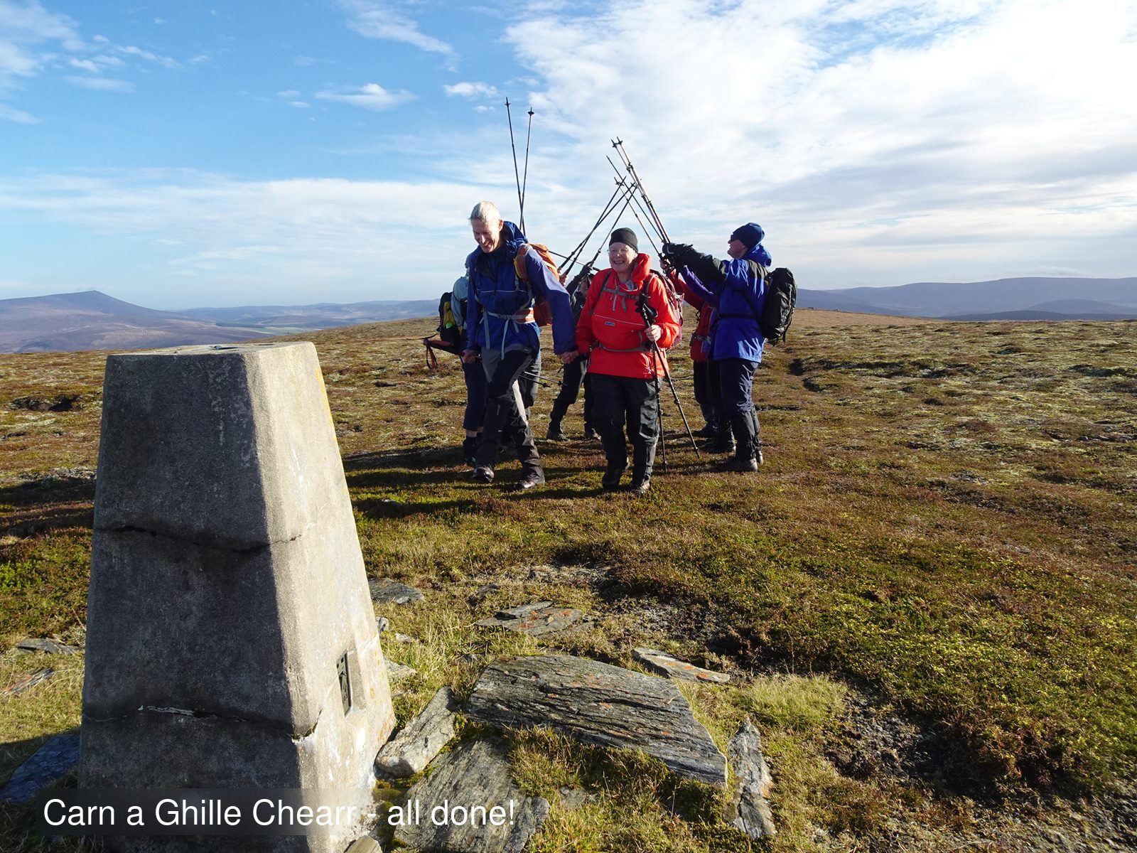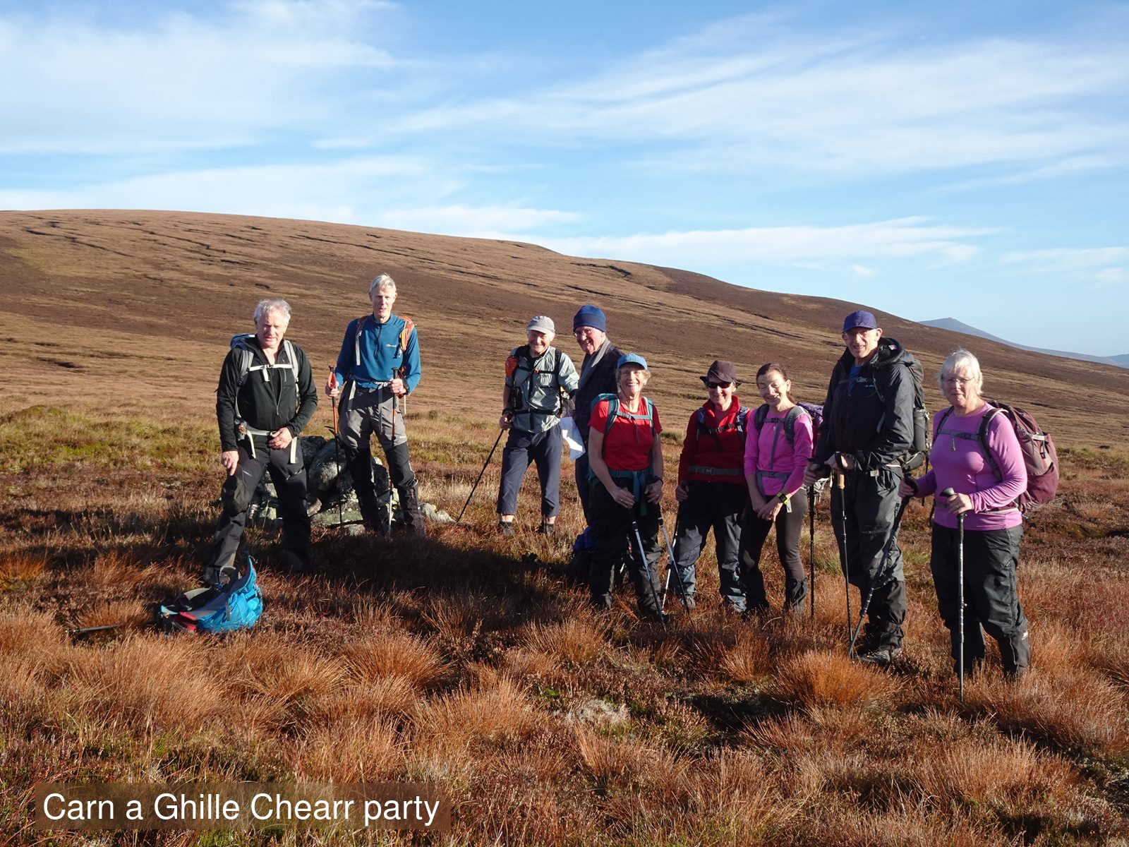 An action packed weekend based at Fraoch Lodge. A long walk over the Cairngorm plateau to Loch Avon and Beinn Mheadhoin, a Graham compleation party in the Cromdale Hills after which some dispersed to sort of nearby Marilyns, which were also a target on Sunday along with Carn nan Tri-tighearnan near Moy, whilst others explored the forests of Abernethy and a coffee/cake shop in Nethy bridge.